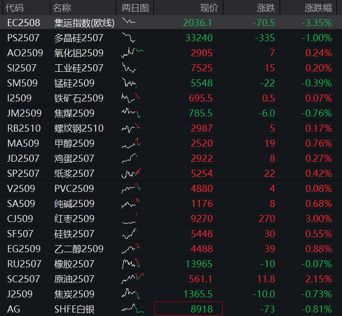 商品期货开盘,原油主力合约涨超2%,玻璃、LU燃油、液化气涨超1%。集运欧线、多晶硅跌超1%。