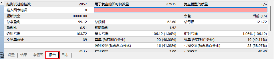 回测完成时,测试窗口中会直接显示测试的结果、净值图以及报告