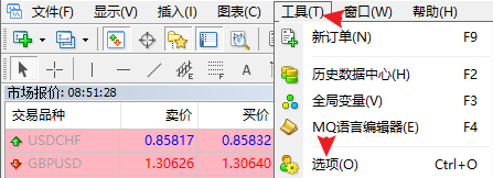 在菜单栏中点击“工具”,并在下拉菜单中选择“选项”。在弹出的窗口中去掉“启用交易系统(自定义指标和脚本除外)”前面的勾选,再点击确定。