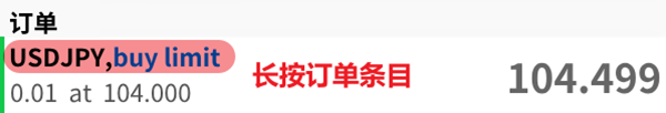 在苹果手机MT4交易页面中,查看已经开设的订单执行条目
