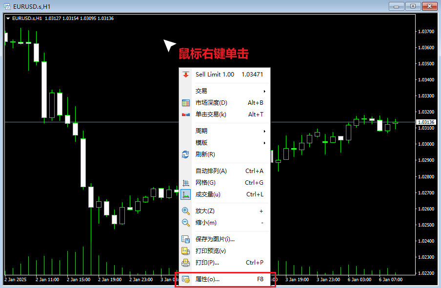 MT4图表属性中设置