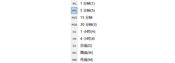 MetaTrader 4中提供周期工具栏,可以通过点击按钮快速切换图表显示周期
