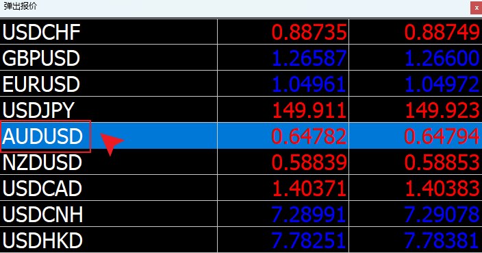 (弹出的报价信息会包含软件页面市场报价窗口中所有已添加显示的交易品种)