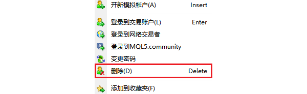 (请注意:如果模拟账户正在登录使用,无法进行删除操作)