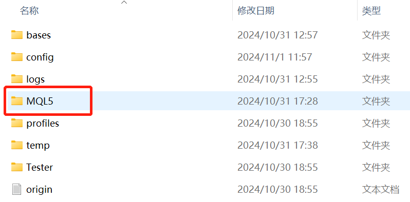 3、跳转至数据文件夹页面,进入“MQL5”文件夹
