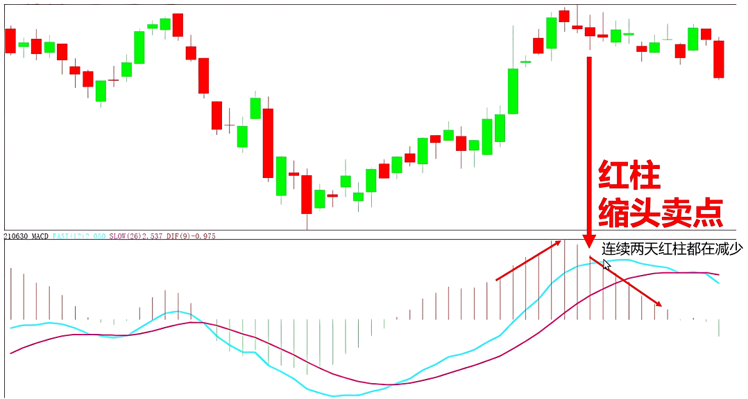 在股价上涨过程中,如果你观察到红柱逐渐缩小,尤其是连续几天红柱面积明显减小,这表明上涨动能减弱,短期内可能会出现回调,这时短线投资者可以考虑卖出。