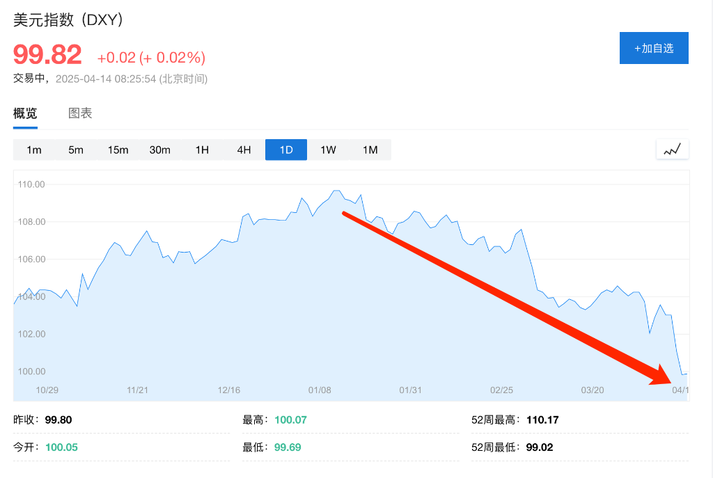 一些投資者已經開始離開美國,市場正在重新評估美元作爲儲備貨幣的地位,並處於快速的去美元化過程中。以往美元作爲避險資產往往受益於市場波動,但目前美股、美債與美元同時遭到拋售,表明投資者正在對美國資產失去信心。