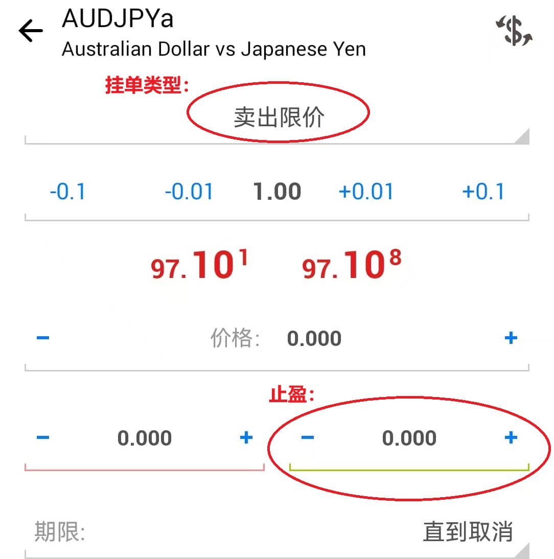 MT4手機開單後設定止盈