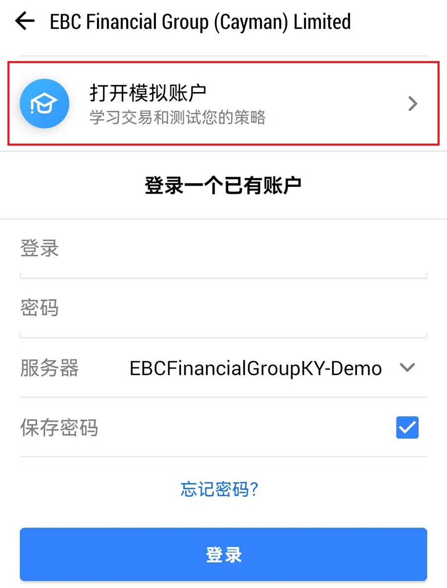 *注意,模擬帳號伺服器屬性均為“Demo”
