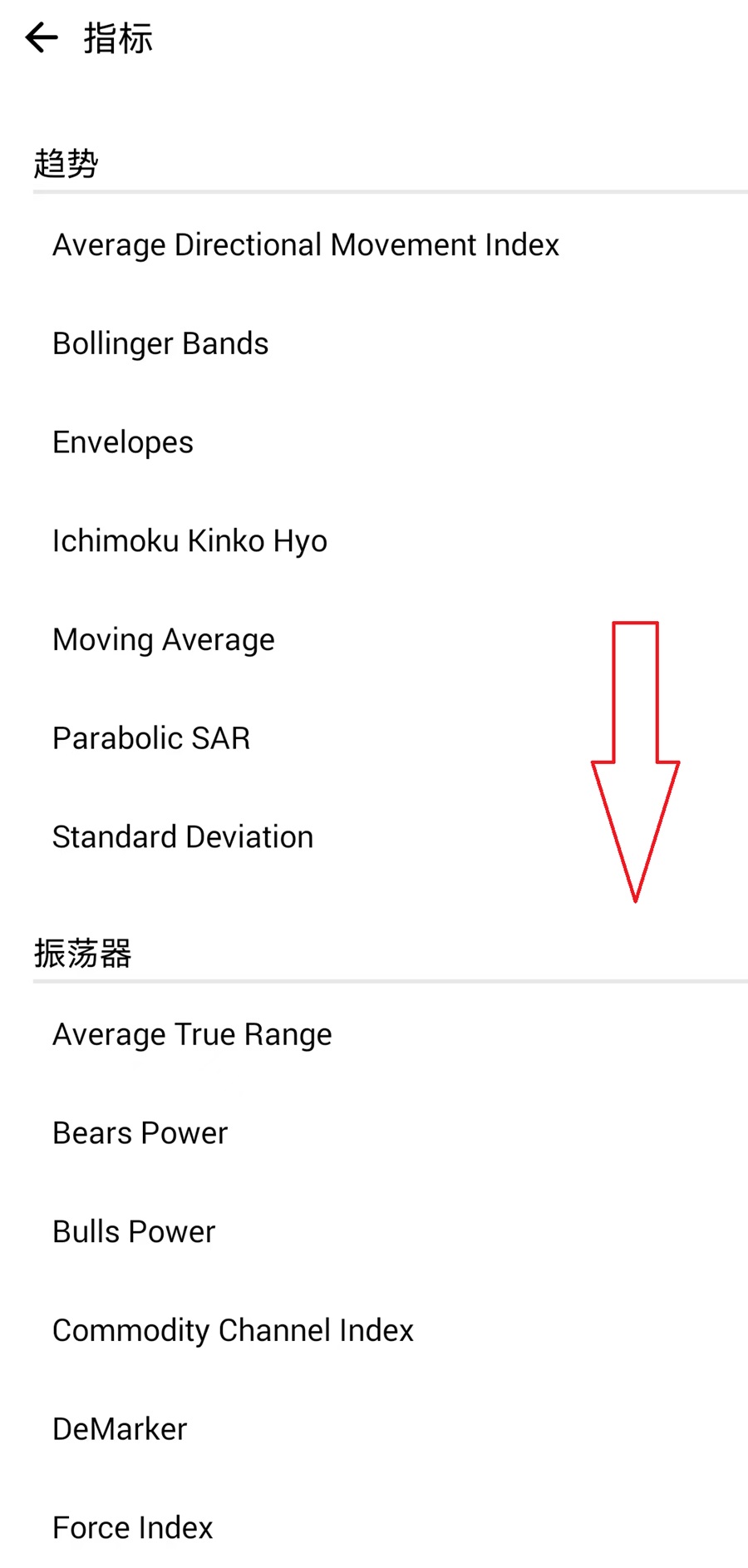 4、隨後進入指標頁面,滑動頁面尋找想要新增的指標類型